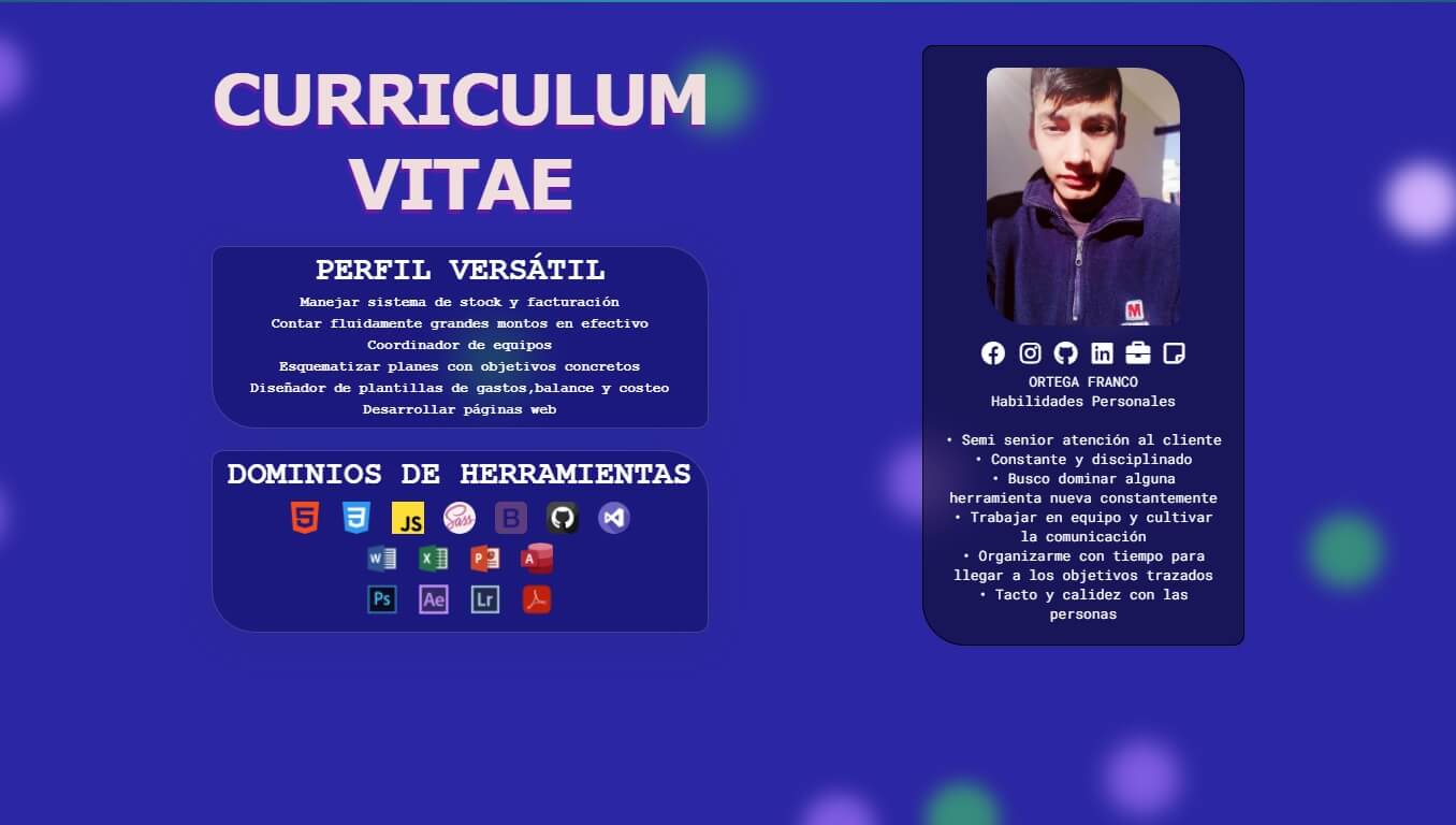Poseo experiencia con proyectos personales y otros pedidos de clientes. En dónde aplico todo mi dominios sobre las herramientas abajo mencionadas.Estoy capacitandome de forma autodidacta y con cursos intensivos como desarrolador avanzado JavasCript para luego trabajar en proyectos grandes escalables y optimos gracias a todos sus framework.